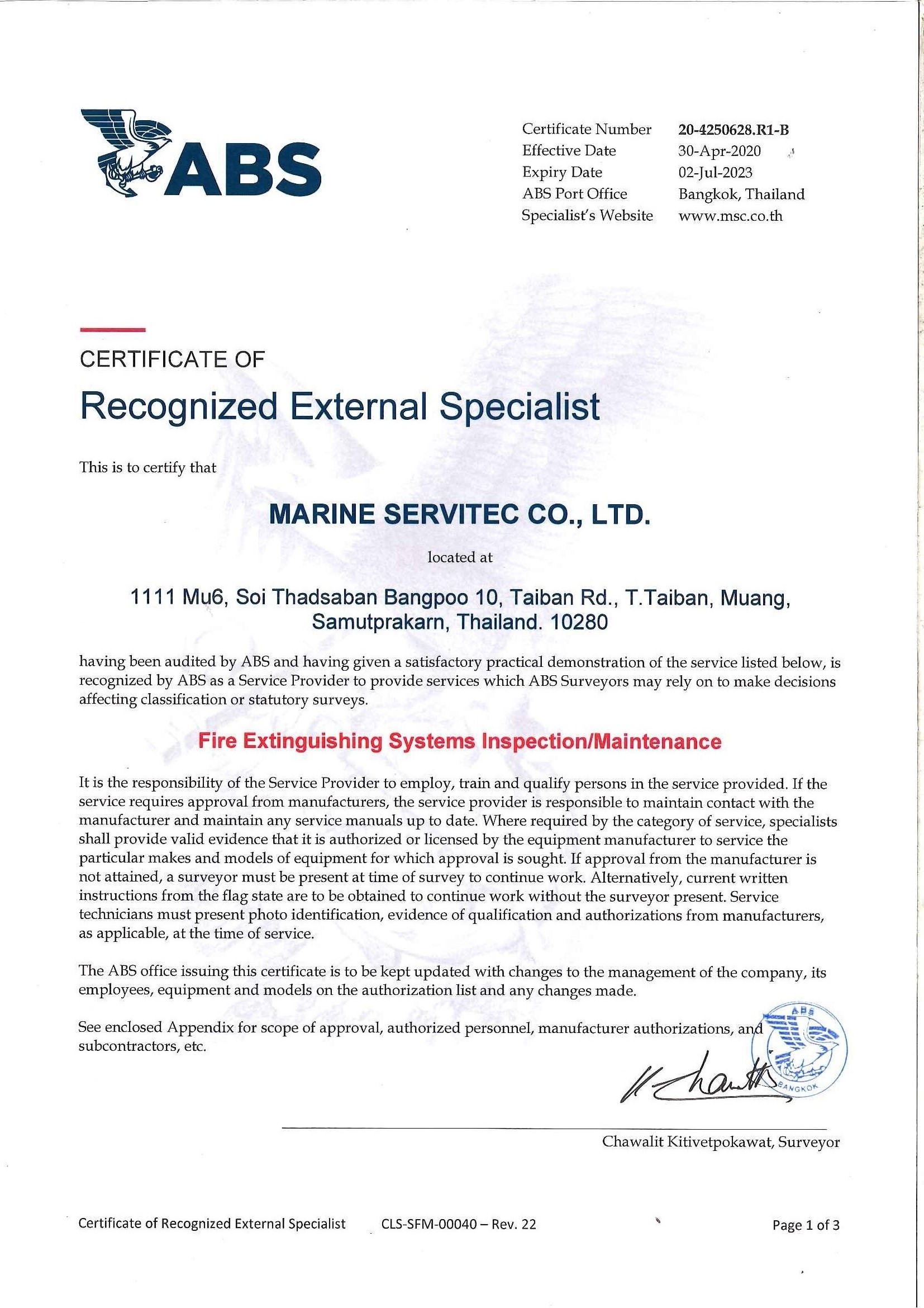 ตรวจสอบ และซ่อมบำรุง ระบบป้องกันอัคคีภัยทางทะเล