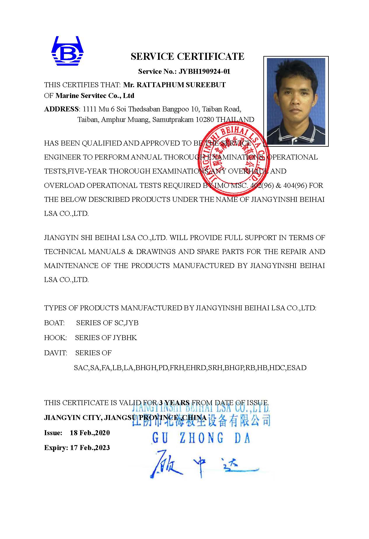 ปรับปรุงและติดตั้งชุด HOOK ของเรือชูชีพตามข้อกำหนด MSC/Circ. 1392