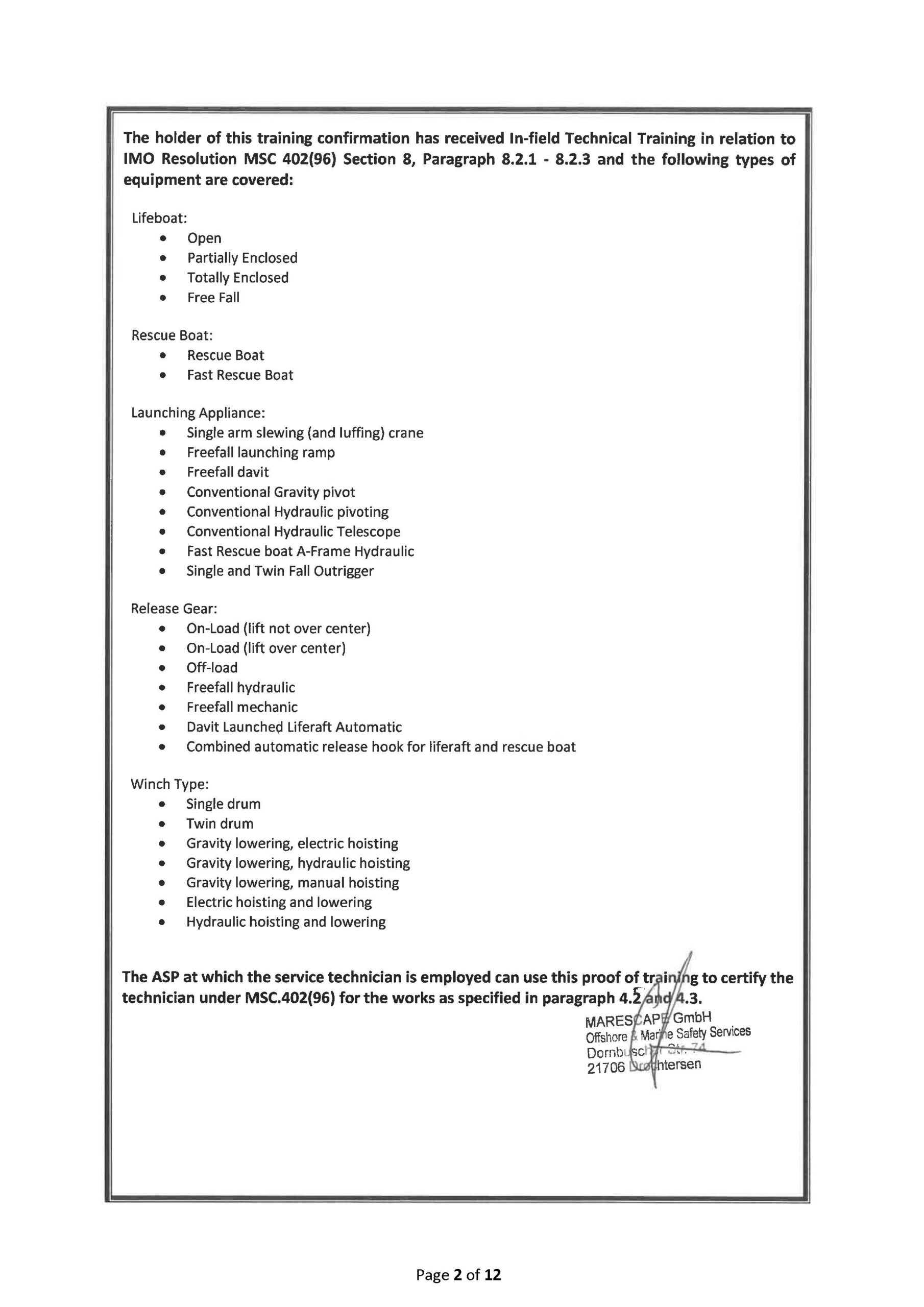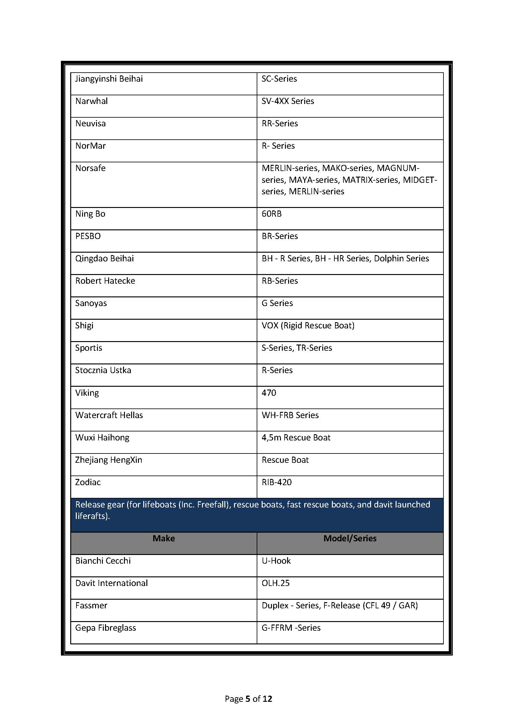 ตรวจสอบ และซ่อมบำรุง เรือชูชีพ, เรือช่วยเหลือกู้ภัย รวมถึงการติดตั้ง และทดสอบระบบการปลดเรือ, การนำกลับเข้าที่