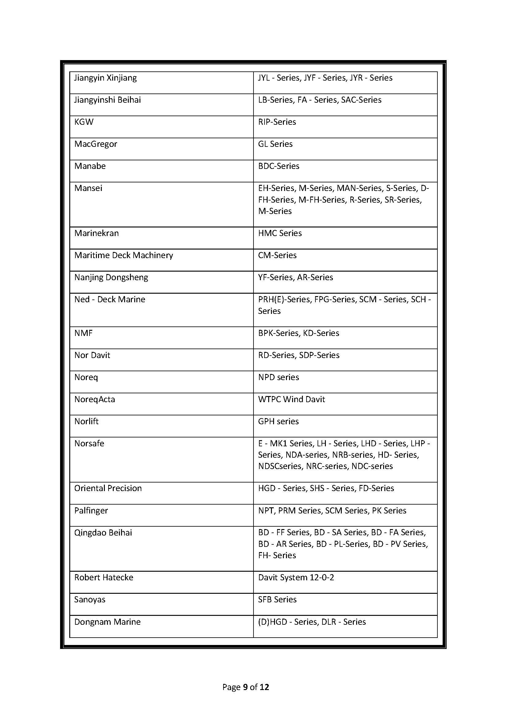 ปรับปรุงและติดตั้งชุด HOOK ของเรือชูชีพตามข้อกำหนด MSC/Circ. 1392