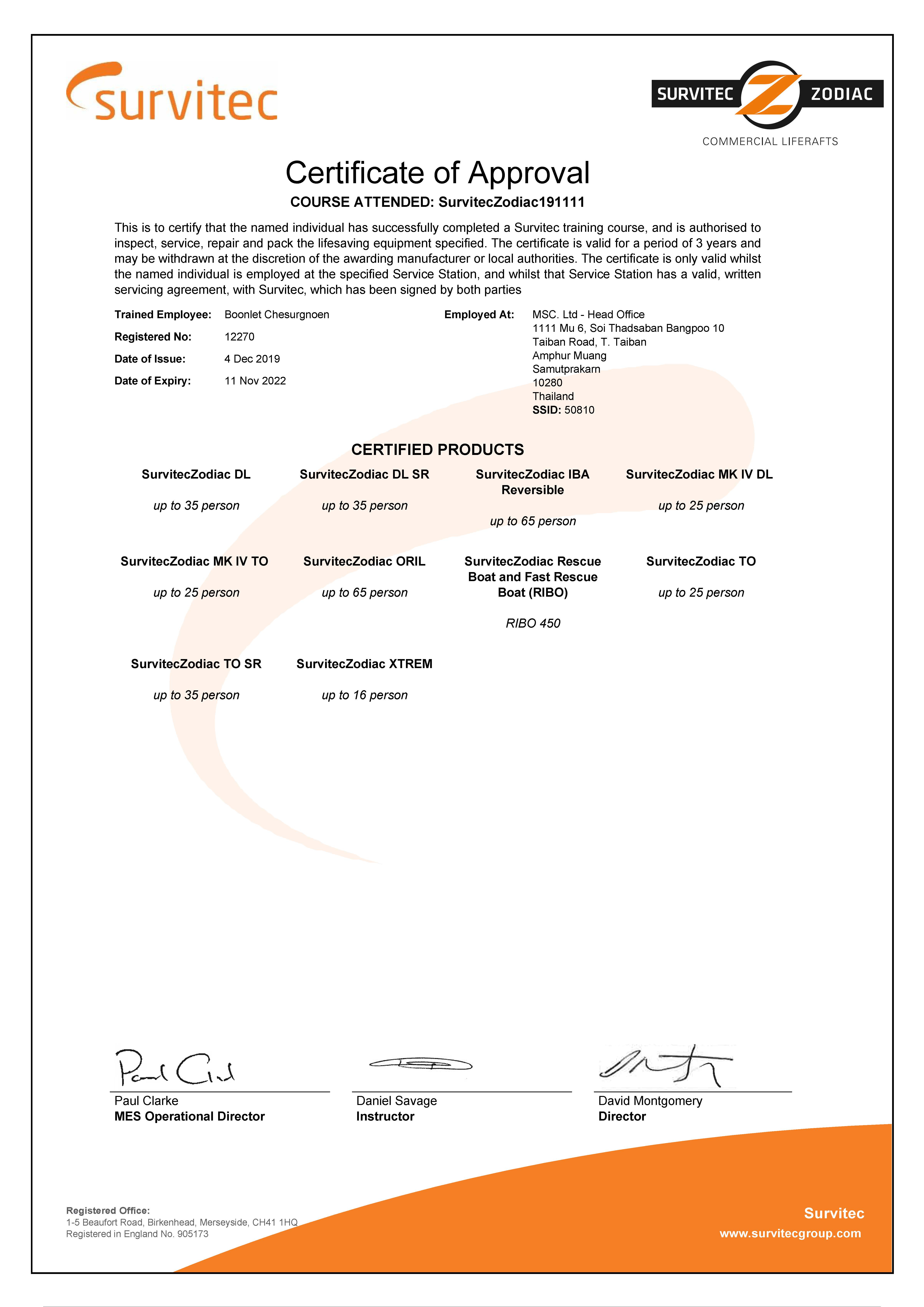 ปรับปรุงและติดตั้งชุด HOOK ของเรือชูชีพตามข้อกำหนด MSC/Circ. 1392